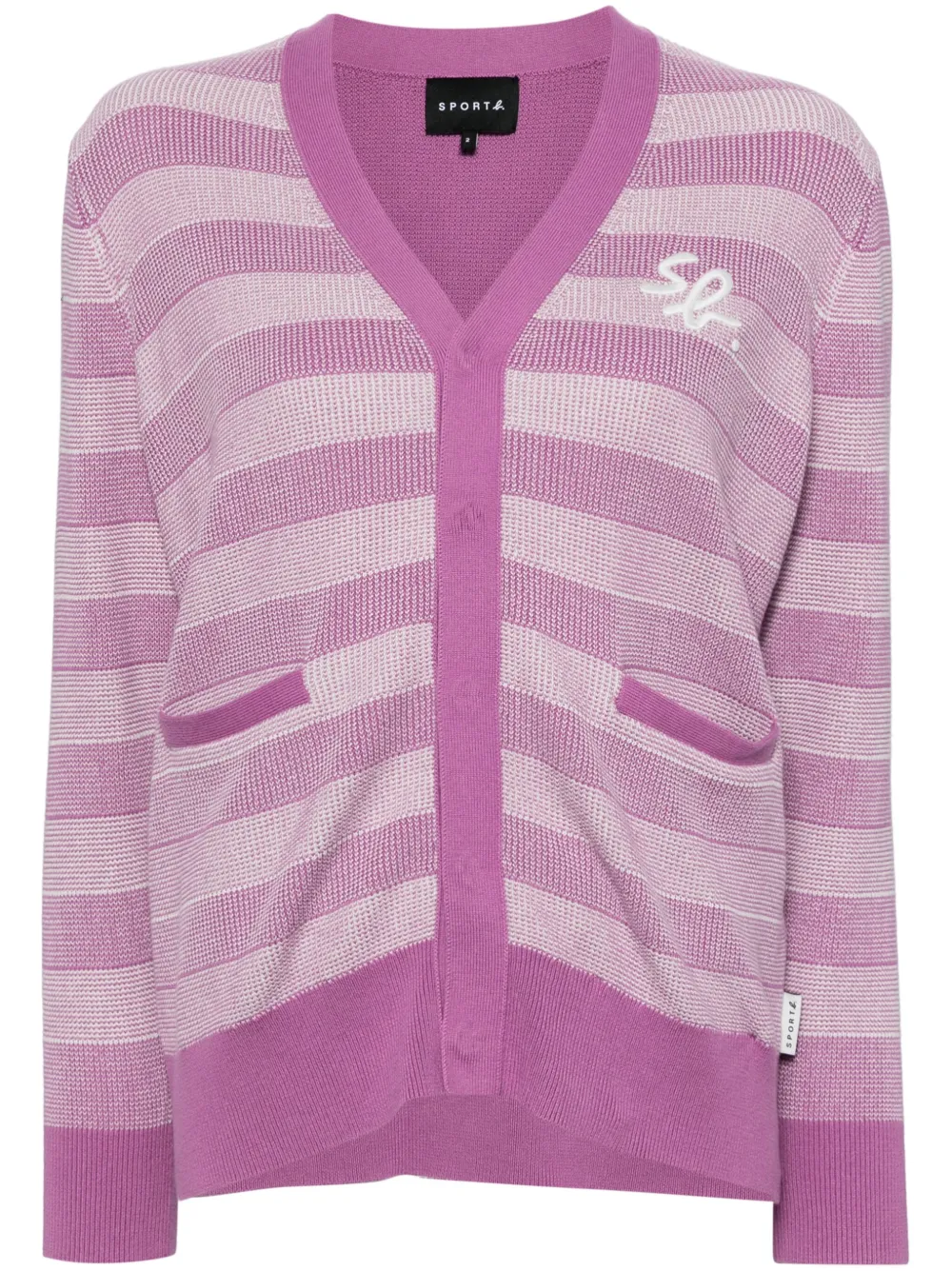 violet clair coton boutonnière sur le devant logo brodé sur la poitrine détails rayés col v deux poches passepoilées avant manches longues ourlet et bords nervurés