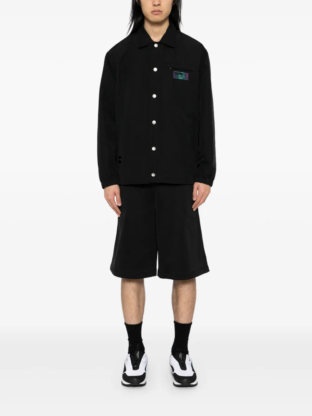 zwart drukknoopsluiting aan de voorkant borstzak met ritssluiting twee paspelzakken aan de voorkant trekkoord zoom