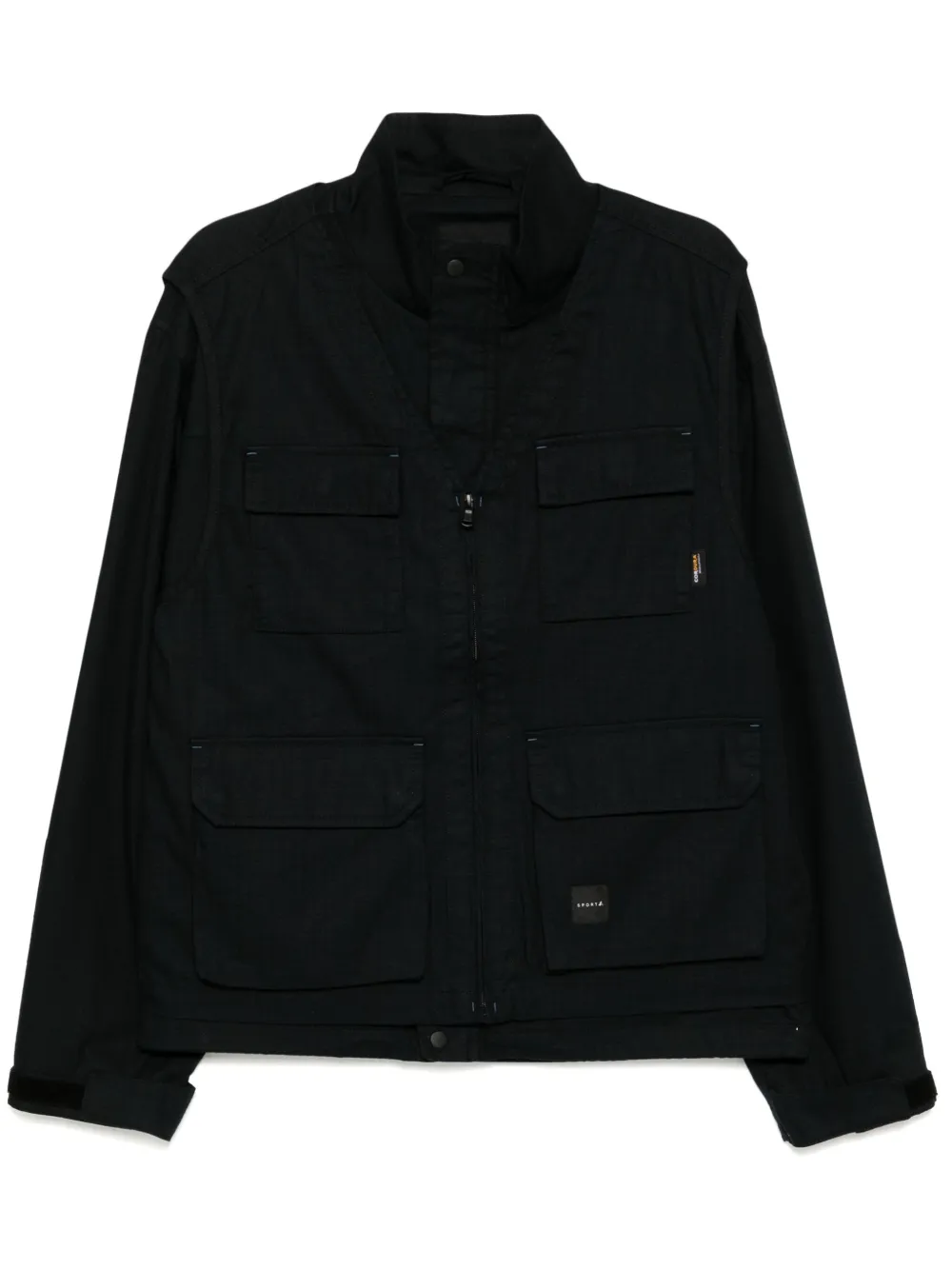 noir coton mélangé bouton pression et fermeture zippée sur le devant quatre poches devant à rabat patch logo sur le devant panneaux détachables deux poches passepoilées latérales manches longues doublure intégrale