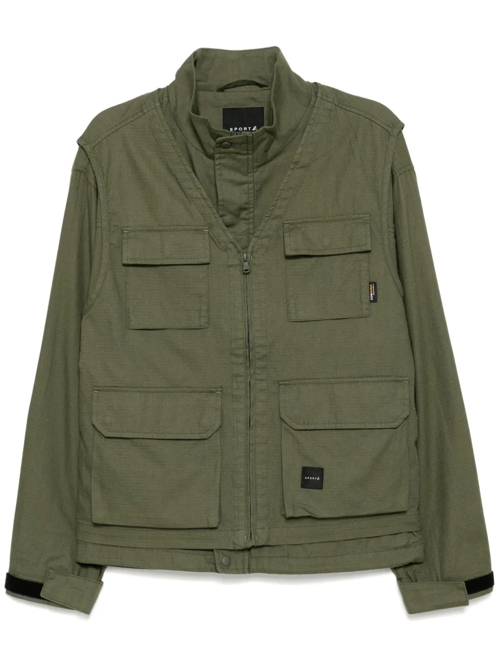 vert olive coton mélangé bouton pression et fermeture zippée sur le devant quatre poches devant à rabat patch logo sur le devant panneaux détachables deux poches passepoilées latérales manches longues doublure intégrale