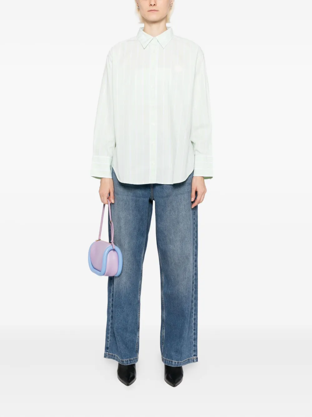 lichtgroen klassieke kraag knoopsluiting aan de voorkant knoopmanchetten gewelfde zoom