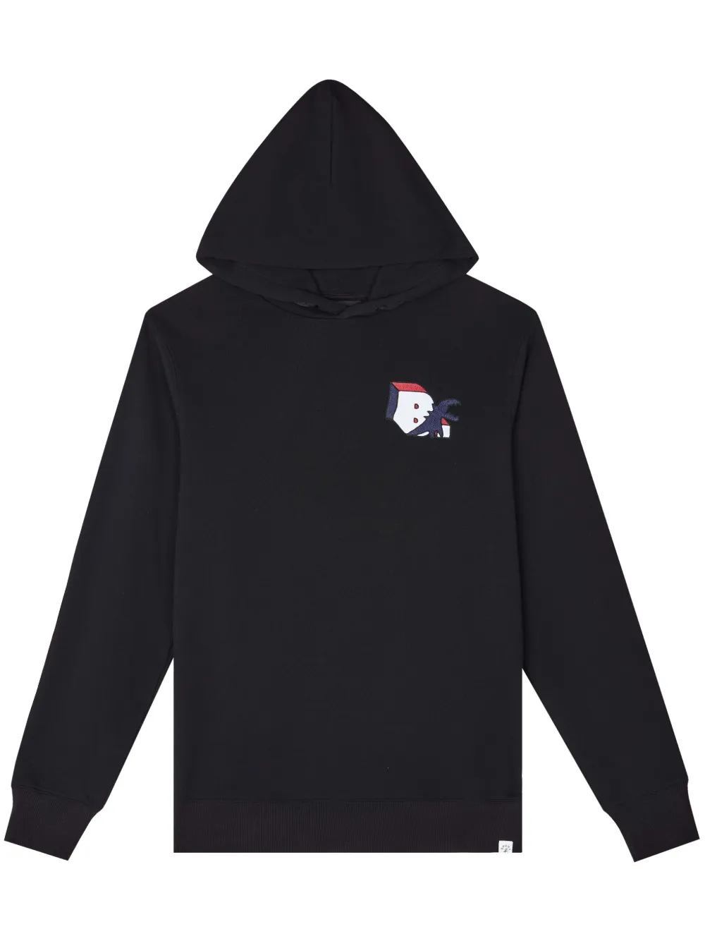 noir coton jersey logo imprimé sur la poitrine patch logo sur le côté capuche classique manches longues ourlet et bords nervurés