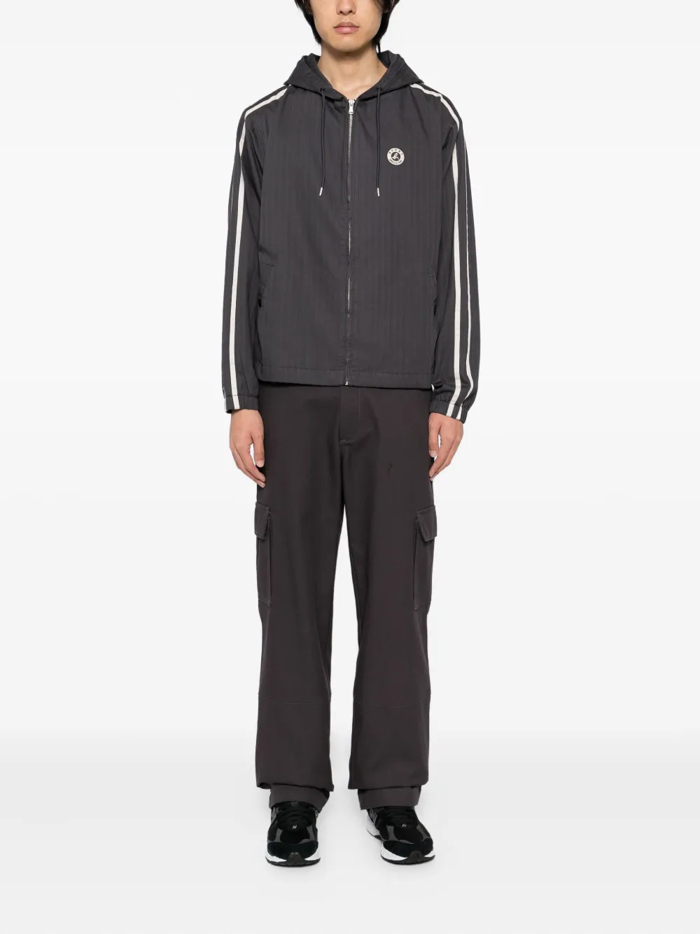 donkergrijs ritssluiting aan de voorkant capuchon met trekkoordsluiting twee zakken met knoopsluiting aan de voorkant