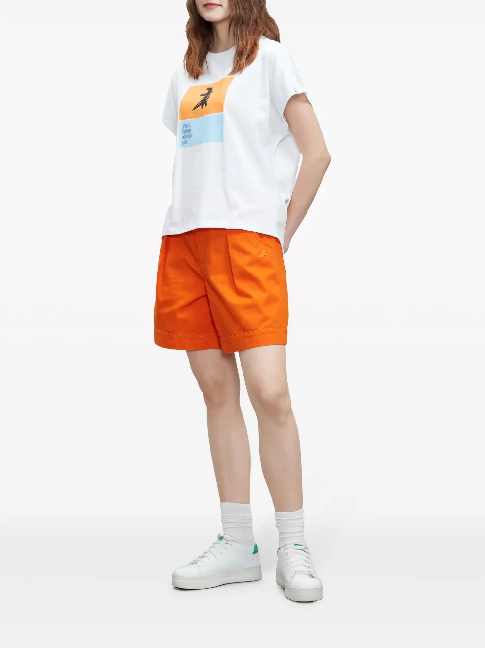worteloranje katoen geborduurd patroon geplooide details high waist verborgen rits- en knoopsluiting riemlussen twee steekzakken aan de zijkant twee opgestikte achterzakken lengte tot boven de knie