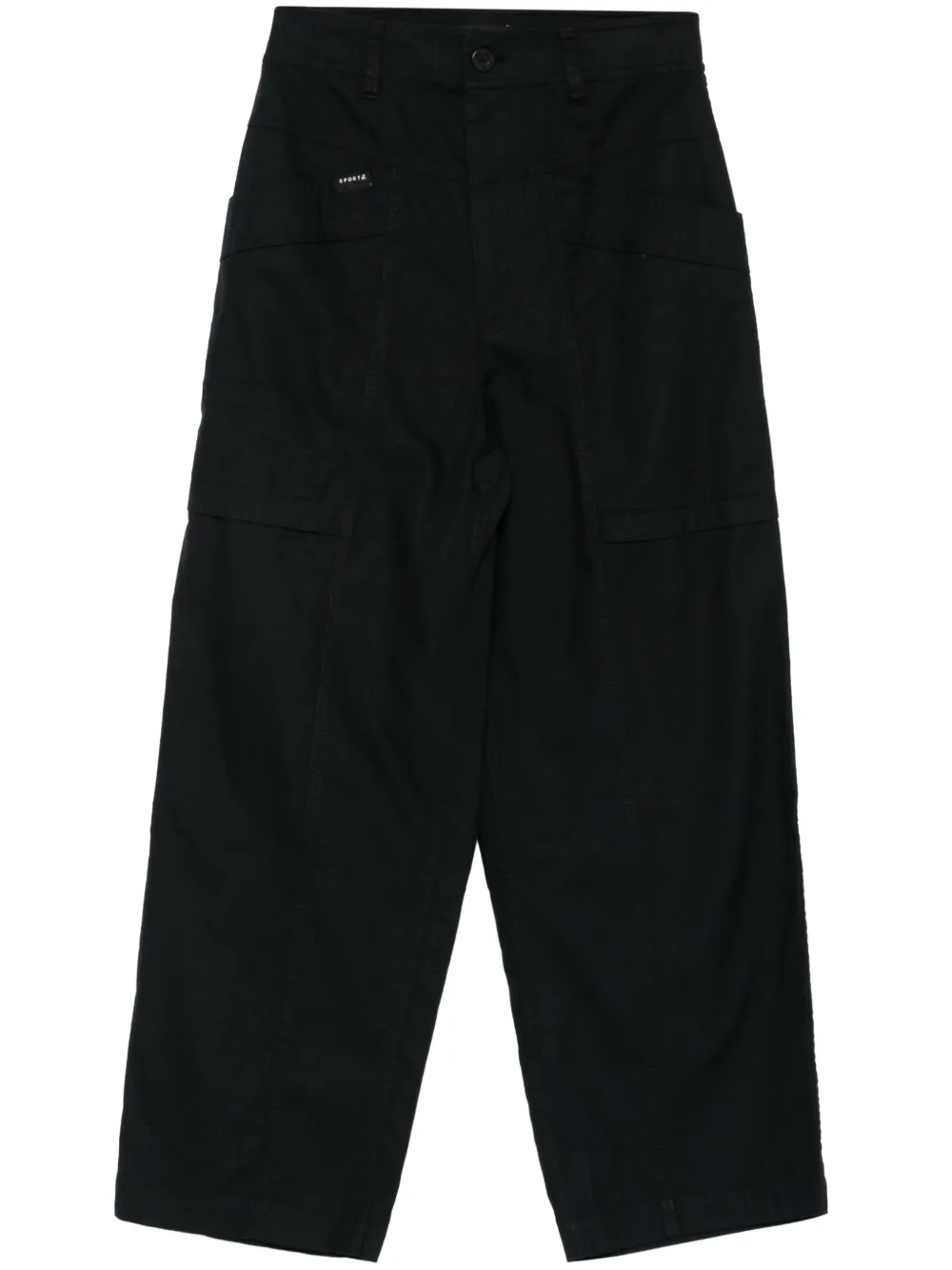 noir coton mélangé texture anti-déchirures boutonnière sur le devant fermeture zippée passants de ceinture deux poches plaquées avant mini étiquette logo poches arrière passepoilées