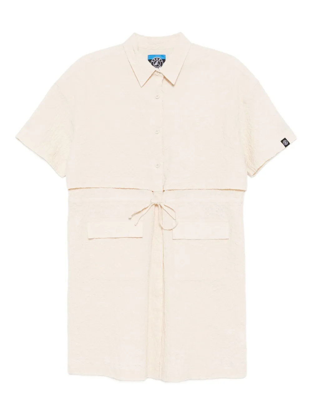 taupe boutonnière sur le devant taille élastique à lien de resserrage manches courtes deux poches plaquées avant