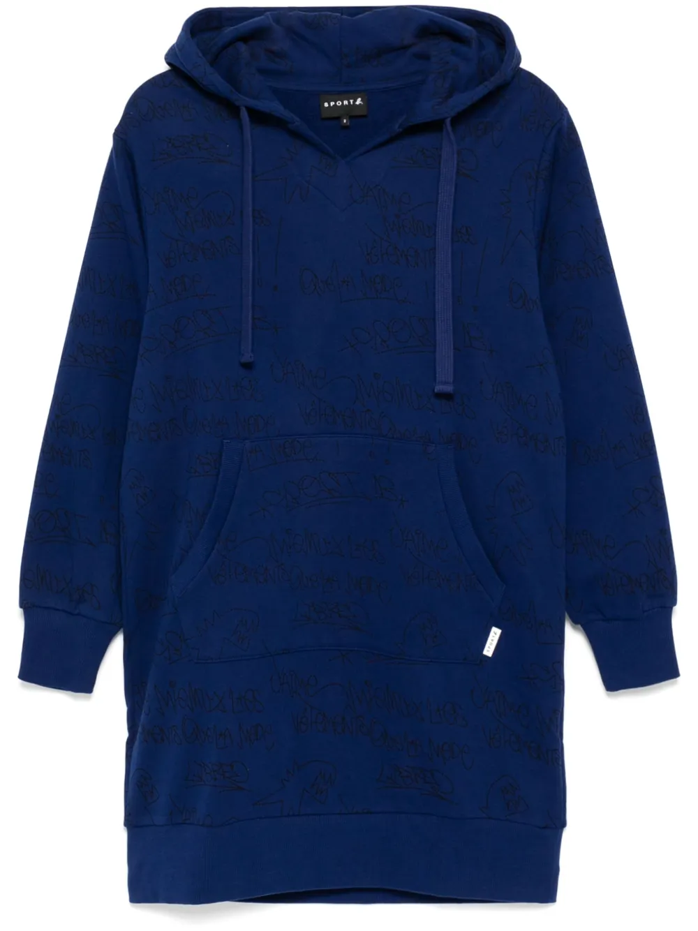bleu roi imprimé graphique intégral poche plaquée sur le devant ourlet et bords nervurés doublure en jersey