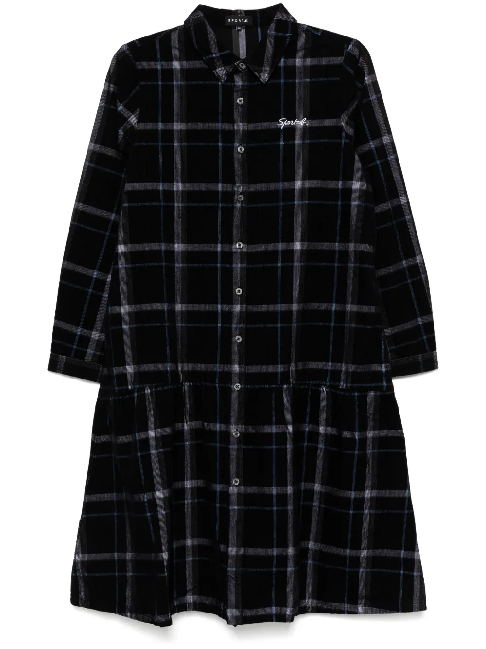 bleu indigo coton velours côtelé fermeture boutonnée logo brodé carreaux poches latérales fendues manches longues ourlet droit