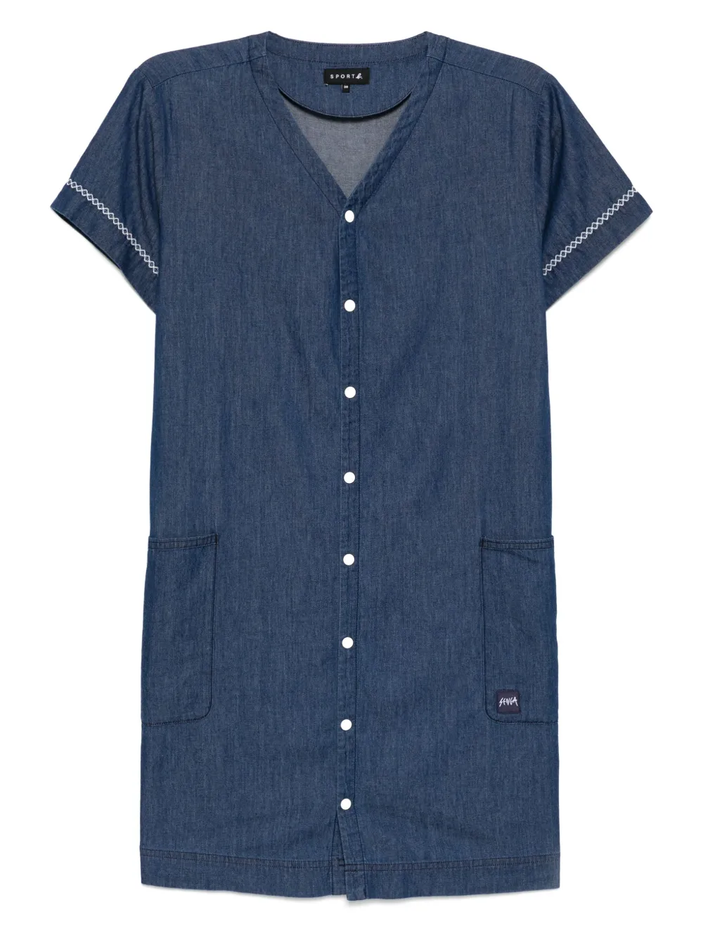 bleu indigo fermeture à boutons pression sur le devant col v manches courtes deux poches plaquées avant