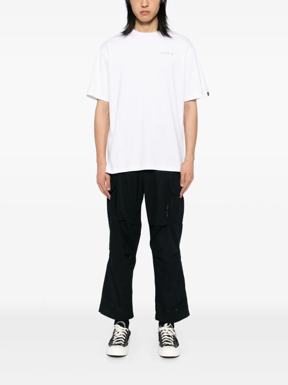 zwart katoenblend knoop- en ritssluiting aan de voorkant riemlussen verstelbare tailleband twee cargo zijzakken vlakken twee klepzakken aan de achterzijde logopatch aan de achterkant enkels met knopen