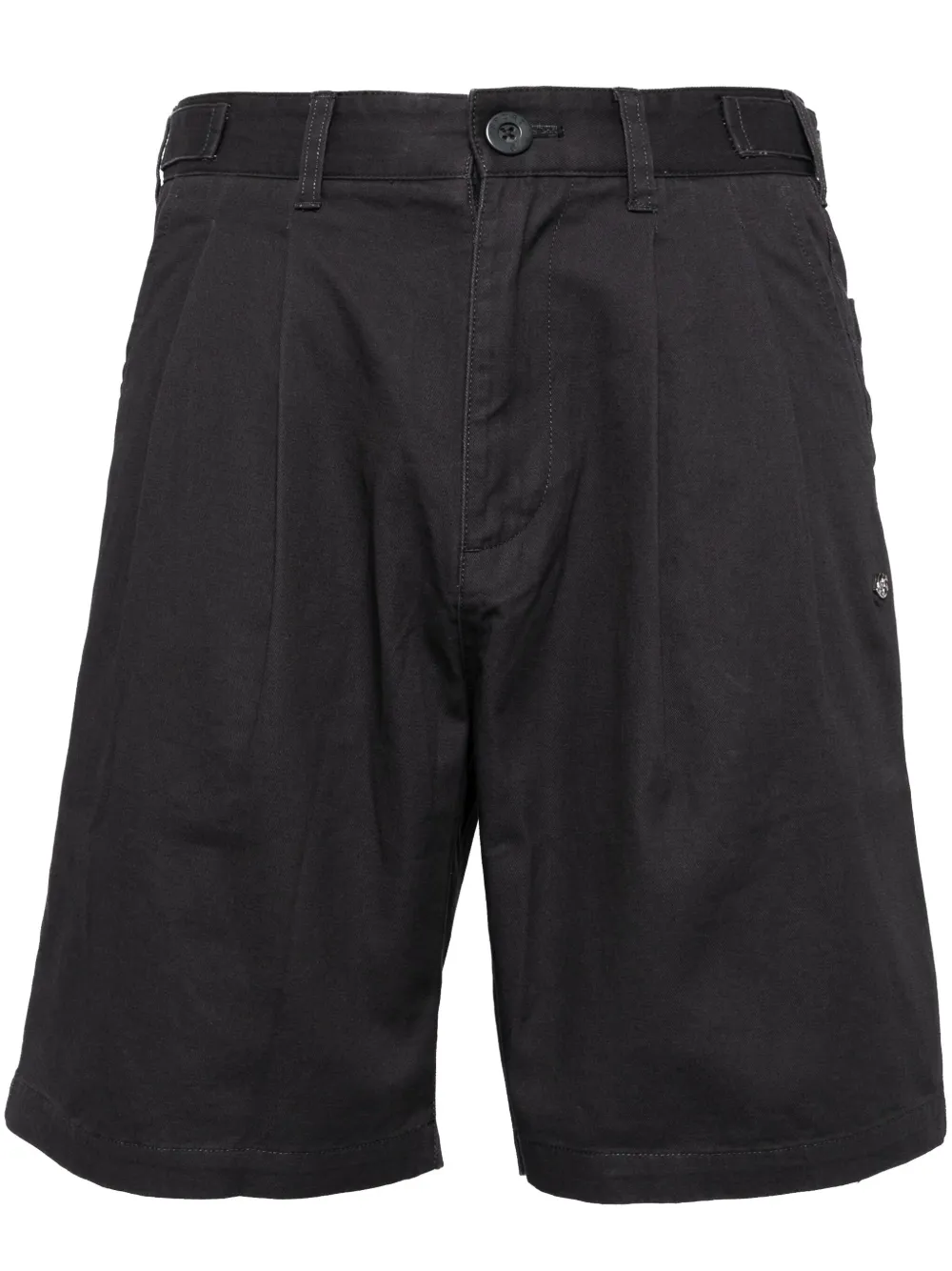 gris anthracite coton plaque logo détails de plis passants de ceinture fermeture à zip et boutons sur le devant poches plaquées latérales poches arrière plaquées longueur au dessus du genou ourlet droit
