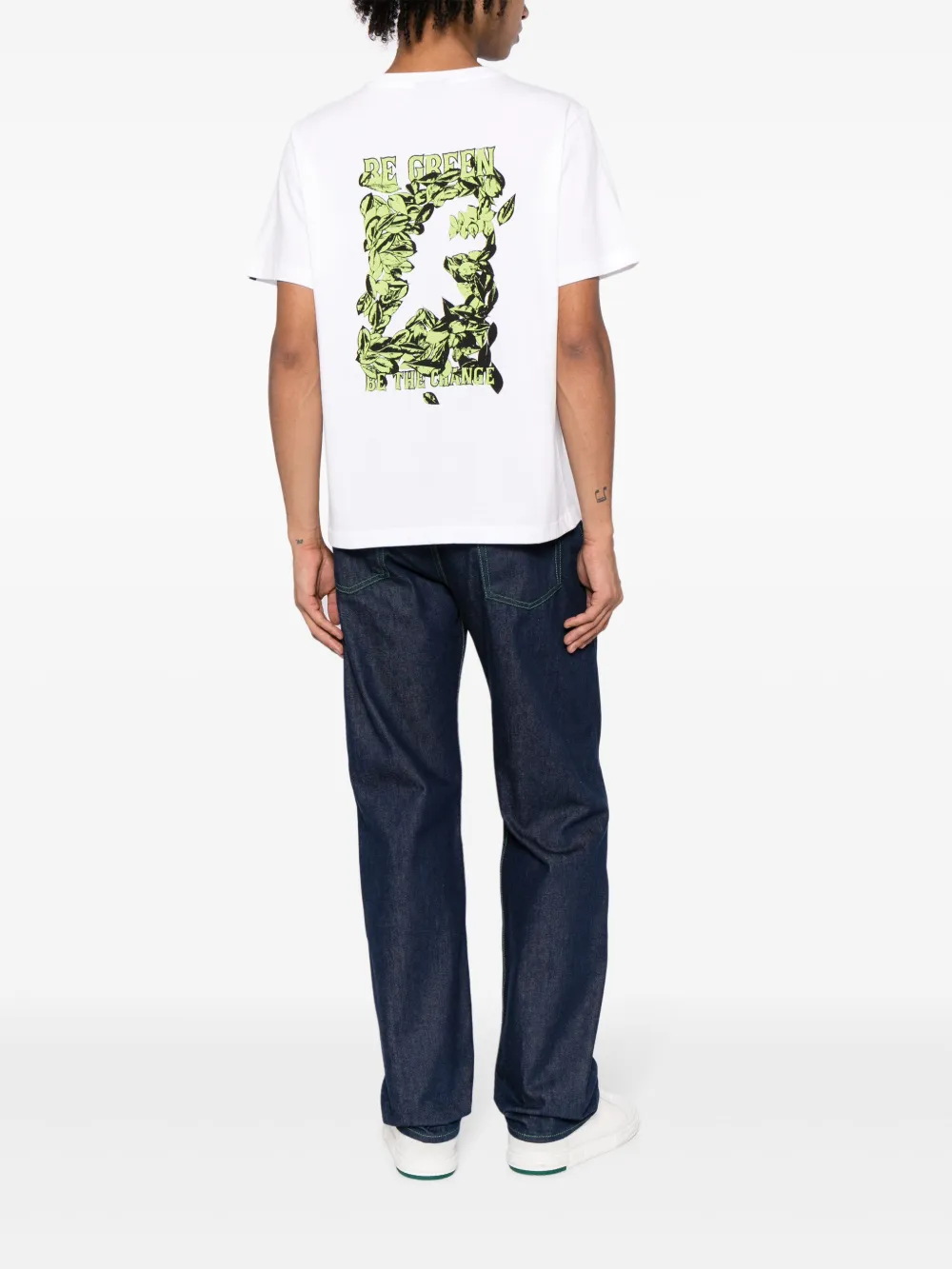 Wit, katoenmix, logoprint op de borst, grafische print aan de achterkant, mini logo label, ronde hals, korte mouwen en rechte zoom.