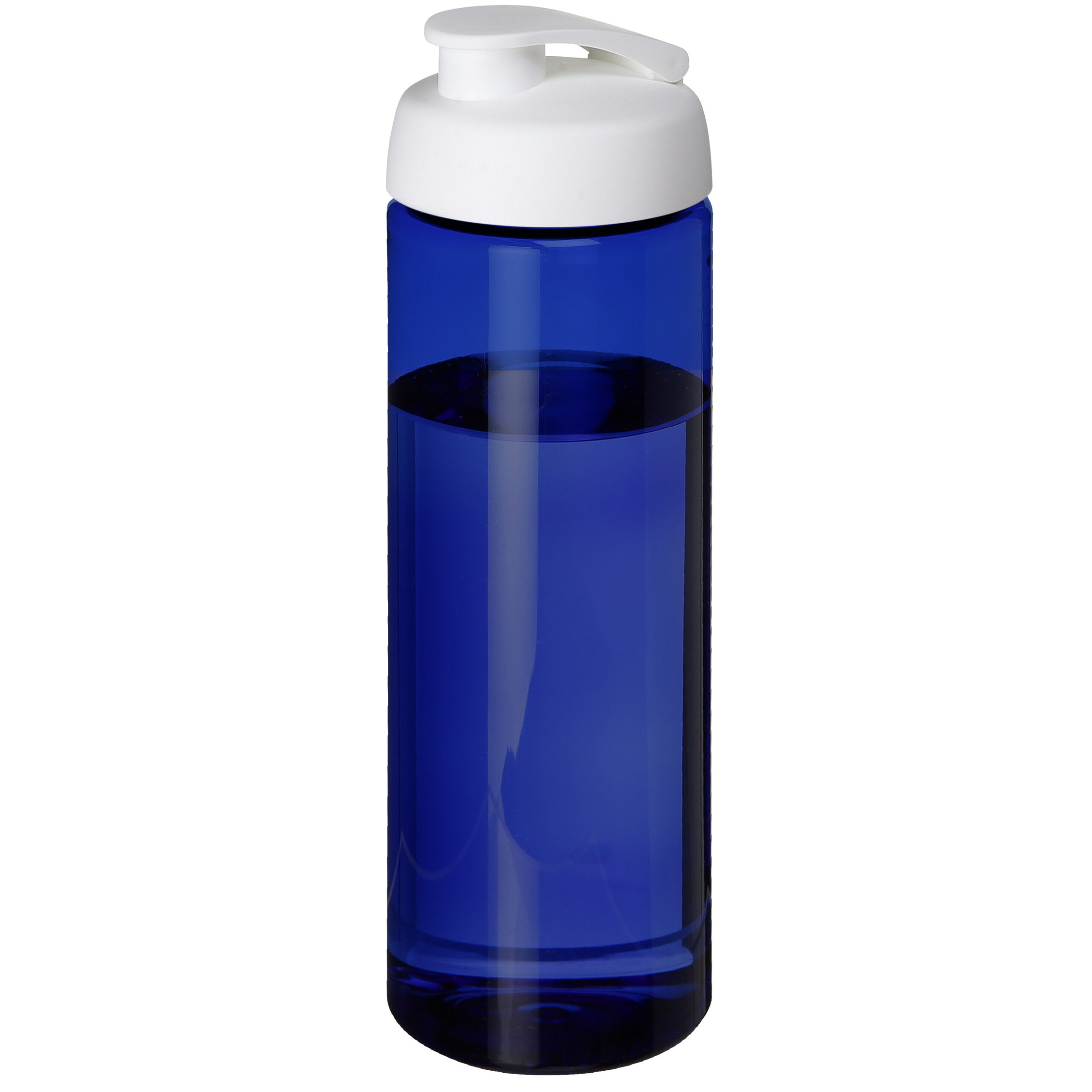 Sport bidon/drinkfles/waterfles gemaakt van gerecycled Hi-eco kunststof in de kleuren blauw/wit met een inhoud van 850 ml. Met handige morsbestendige klik-deksel. Enkelwandige gladde drinkfles gemaakt van Prevented Ocean Plastic. Het plastic wordt verzameld binnen een straal van 50 km van een oceaankustlijn of grote waterweg die uitmondt in de oceaan. Dit wordt vervolgens gesorteerd en omgezet in hoogwaardig en voedselveilig gerecycled plastic.