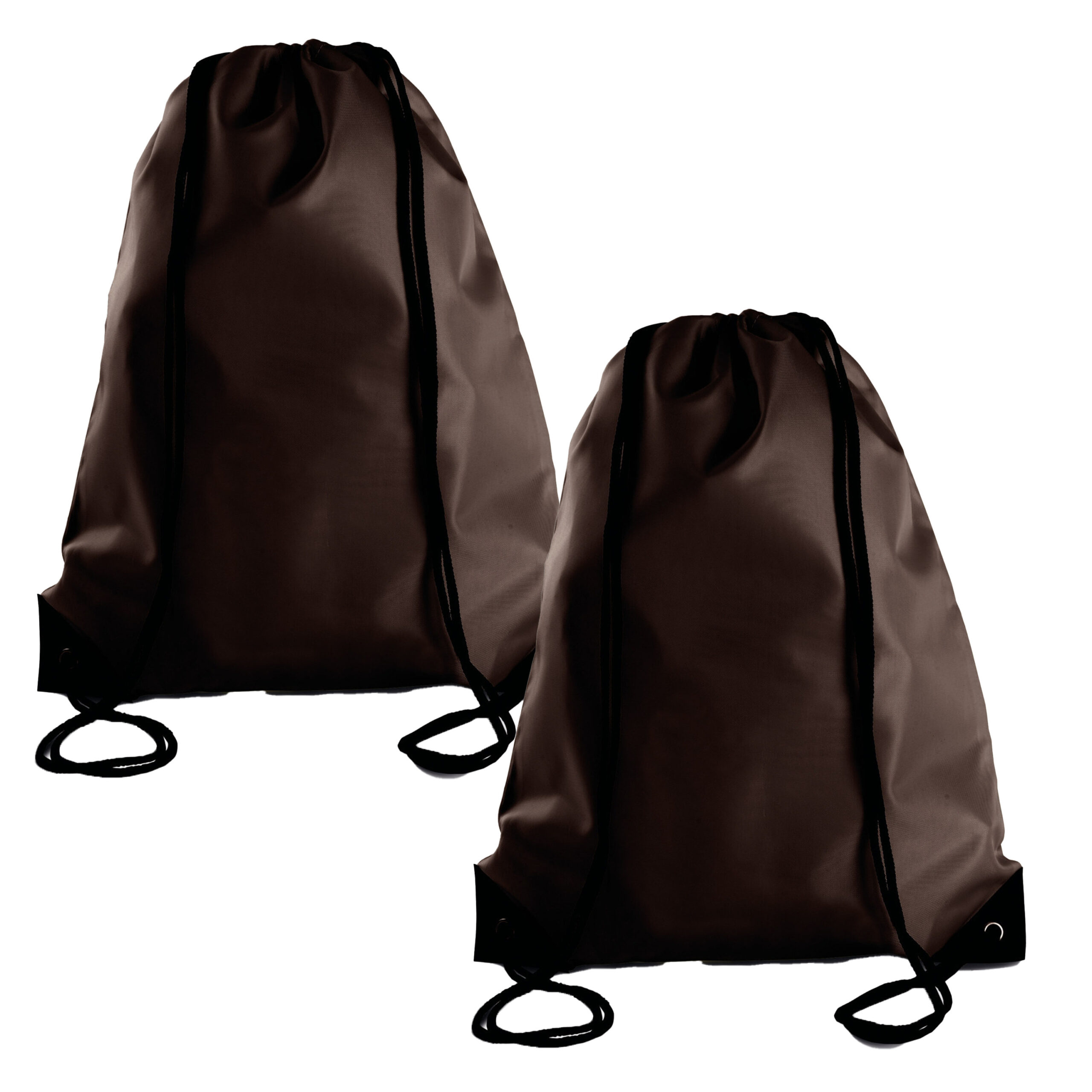 2x sport gymtas/draagtas in de kleur bruin met handig rijgkoord en een afmeting van 34 x 44 cm. Gemaakt van polyester met verstevigde hoeken. Eenvoudige rugtas voor sport, zwemmen en of voor een festival/carnaval. Deze tas is waterbestendig. Geschikt voor kinderen en volwassenen voor diverse toepassingen.