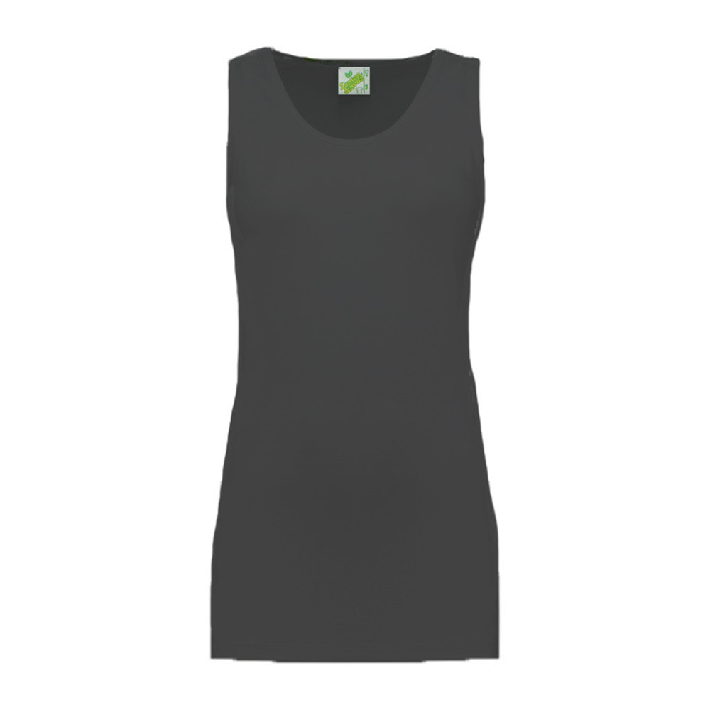 Sport singlet of mouwloos t-shirt voor dames in de kleur antraciet. Dit mouwloze shirt is geschikt voor een work-out, maar kan natuurlijk ook dienen als basis voor onder een blouse of andere kleding. Draagt comfortabel op de huid dankzij de mooie kwaliteit katoen met elastaan, langere lengte en aansluitende pasvorm. Dit sportieve singlet is dus multifunctioneel en geschikt voor iedere gelegenheid.