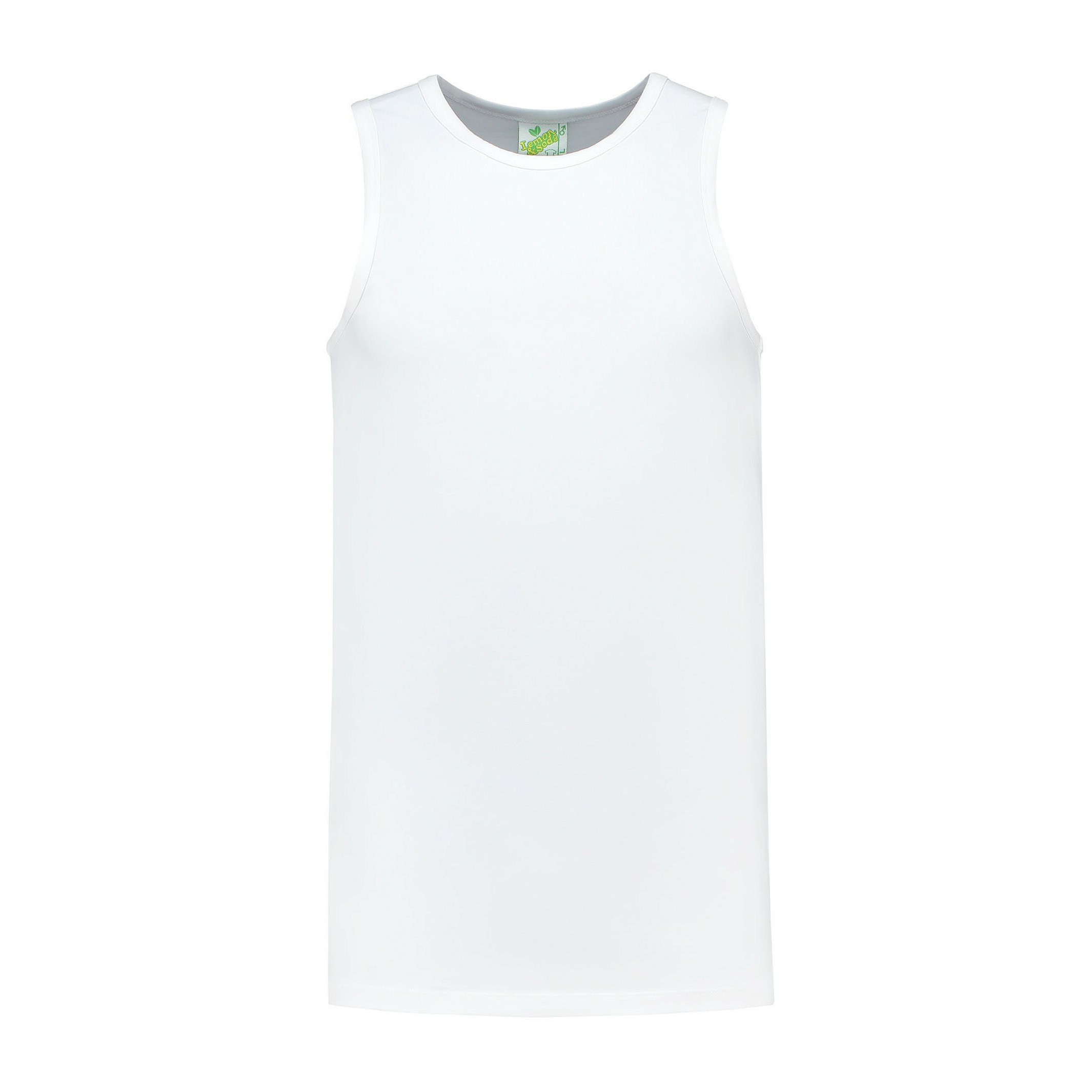 Sport singlet of mouwloos t-shirt voor heren in de kleur wit. Dit mouwloze shirt is geschikt voor een work-out, maar kan natuurlijk ook dienen als basis voor onder een blouse of andere kleding. Draagt comfortabel op de huid dankzij de mooie kwaliteit katoen met elastaan, langere lengte en aansluitende pasvorm. Dit sportieve singlet is dus multifunctioneel en geschikt voor iedere gelegenheid.