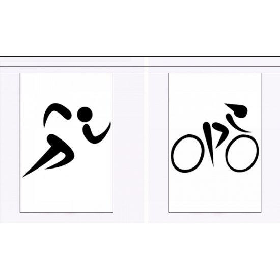 Vlaggenlijn in sporten thema van 9 meter. Deze vlaggenlijn van polyester met diverse soorten sport vlaggen heeft een formaat van ongeveer 9 meter. De lijn bevat 30 vlaggen. 15 verschillende sporten die 1 x worden herhaald. De vlaggen hebben een formaat van ongeveer 22.5 x 15 cm. Versiering en feestartikelen voor sport events zoals de olympische spelen.
