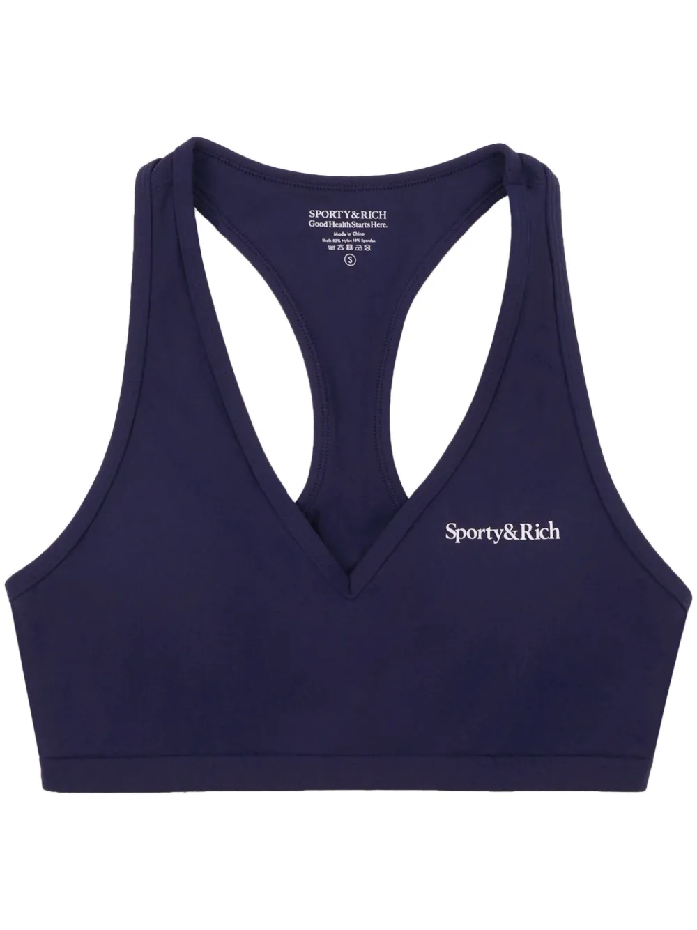 bleu marine dos nageur col v design stretch logo imprimé à la poitrine technologie de compression design sans manches