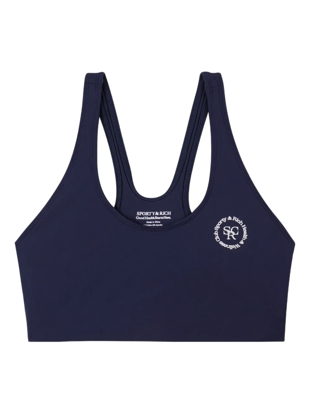bleu marine dos nageur logo CC circulaire coupe ajustée encolure arrondie design sans coutures