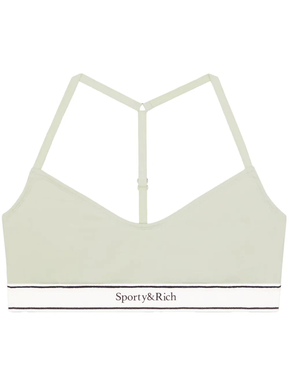 vert sauge/blanc design stretch col v brides portées épaules ajustables dos nageur bande sous-poitrine à logo ourlet droit coupe crop