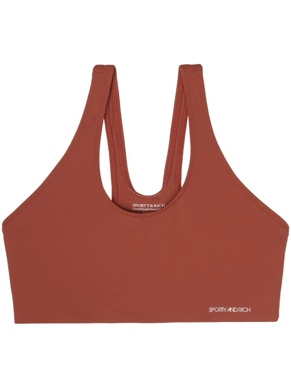 Rouge brique, construction stretch, logo imprimé sur le devant, encolure arrondie, design sans manches, ourlet droit.