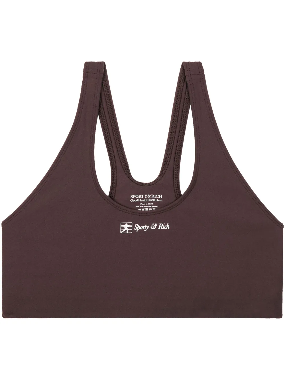 chocolat design stretch logo imprimé à la poitrine encolure arrondie design sans manches dos nageur ourlet droit coupe crop