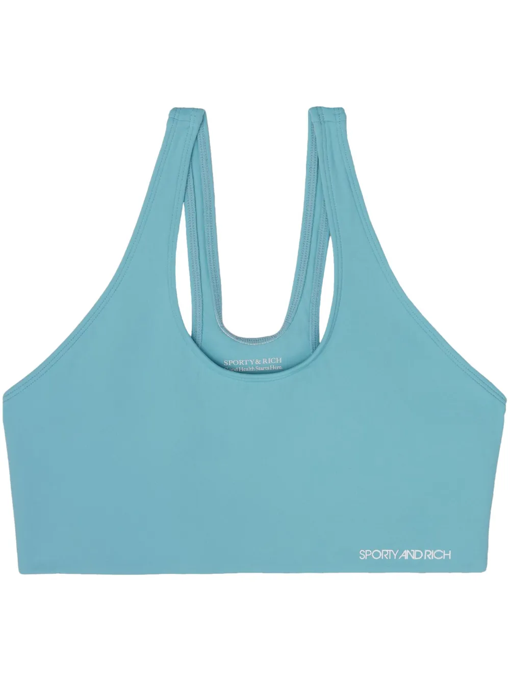 Bleu aqua, construction stretch, ourlet à logo imprimé, encolure arrondie, bretelles fines, design sans manches, dos nageur, coutures invisibles, coupe courte.