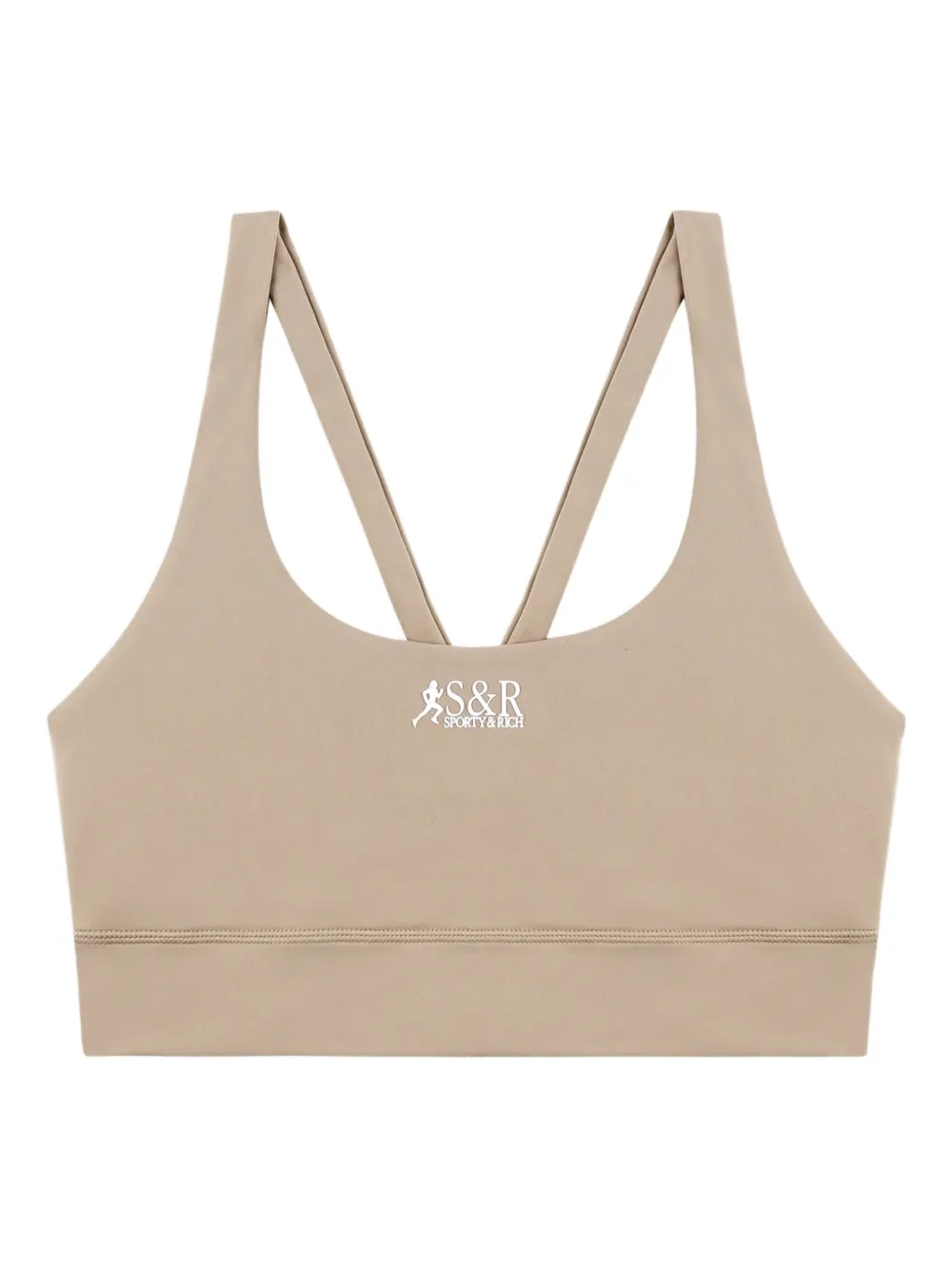 beige sable logo imprimé sur le devant bande sous-poitrine élastiquée design sans manches