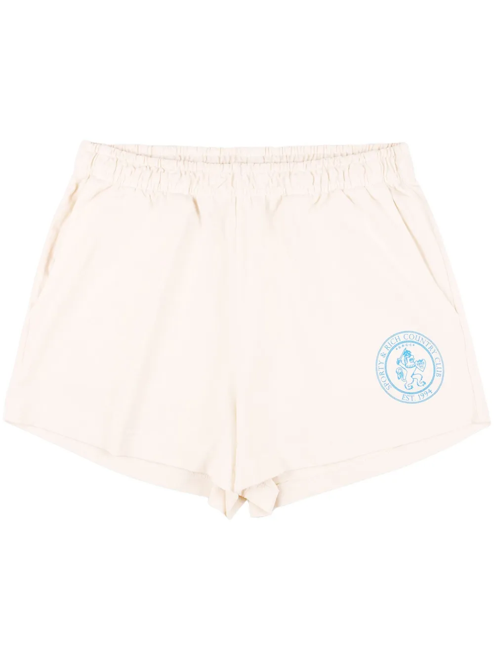 blanc crème coton motif héraldique ceinture élastique deux poches latérales passepoilées poche arrière plaquée coupe courte