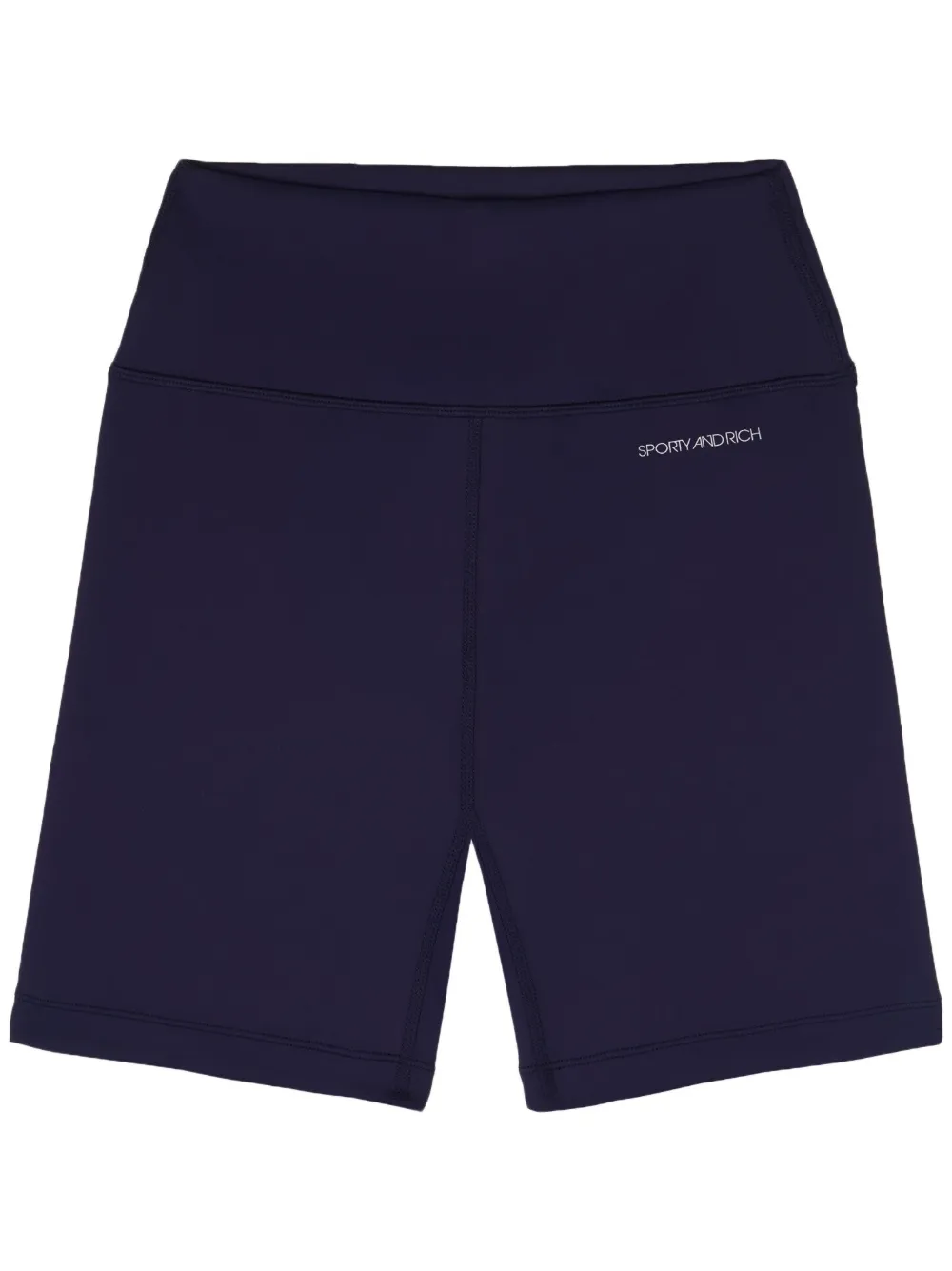 bleu marine construction stretch logo imprimé sur la cuisse taille haute coupe super skinny ourlet droit coupe courte N’oubliez pas : cet article doit être essayé par-dessus vos propres vêtements.
