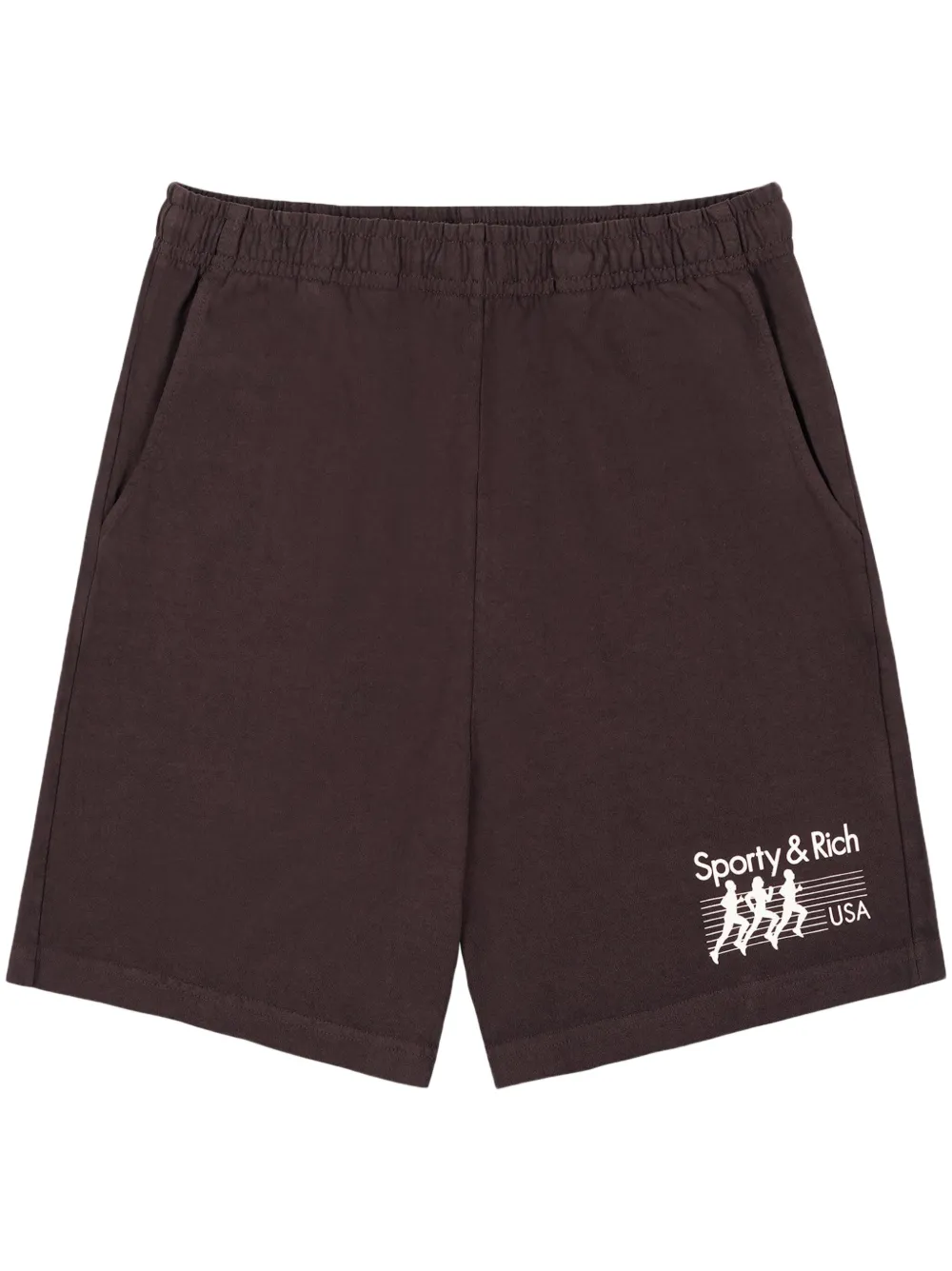 chocolat coton ceinture élastique deux poches latérales passepoilées logo imprimé sur le devant poche arrière plaquée