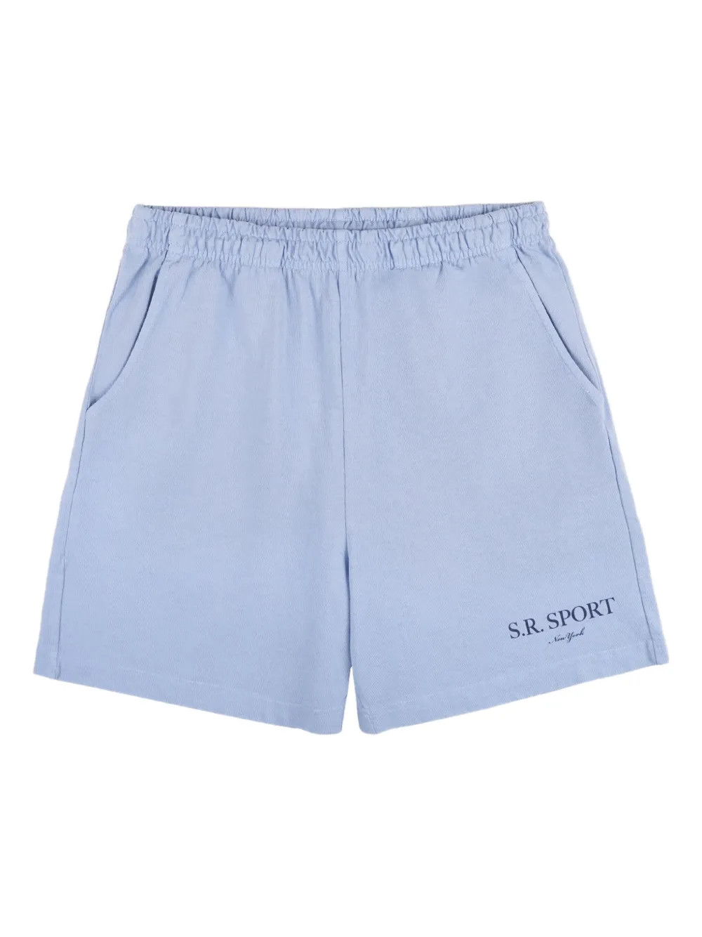 bleu ciel ceinture élastique poches latérales fendues poche arrière plaquée logo imprimé sur le devant