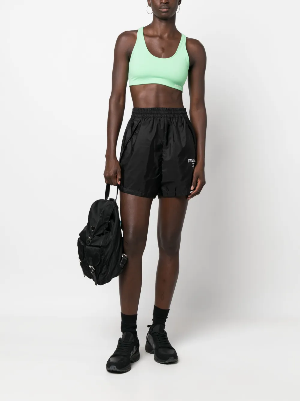 Pastelgroen, stretch design, racerback, ronde hals, mouwloos en cropped.