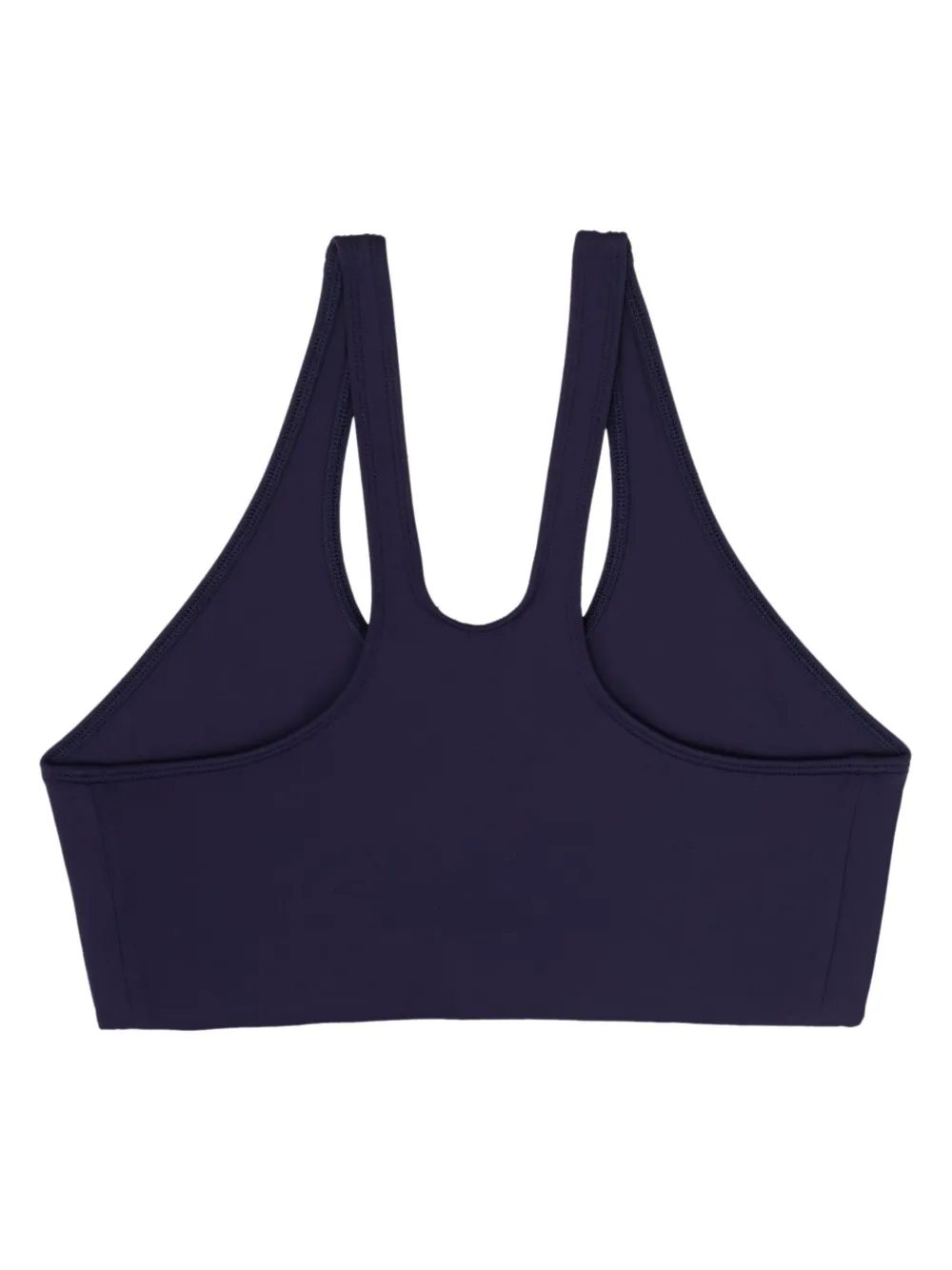 Marineblauw, stretch design, logoprint op de voorkant, ronde hals, mouwloos en cropped.