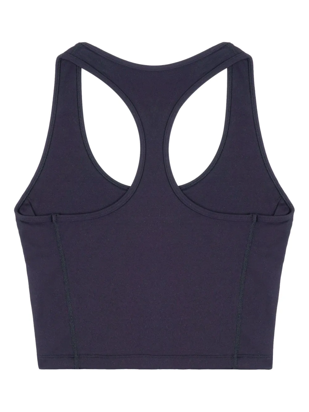 middernachtblauw stretch design logoprint op de borst ronde hals mouwloos racerback rechte zoom cropped