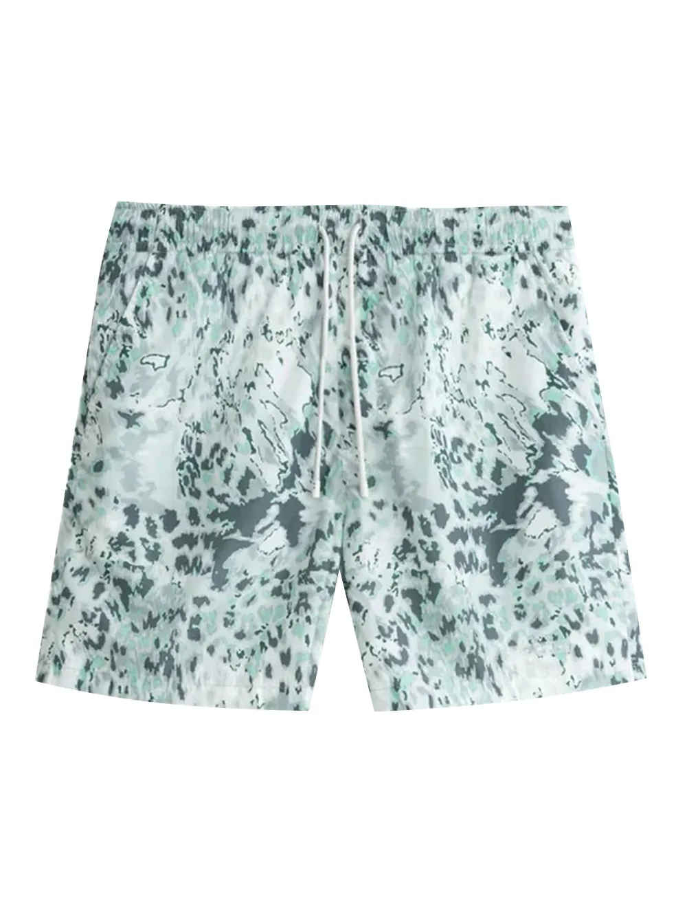 gris clair taille élastique à lien de resserrage imprimé léopard poches latérales fendues poche arrière à rabat