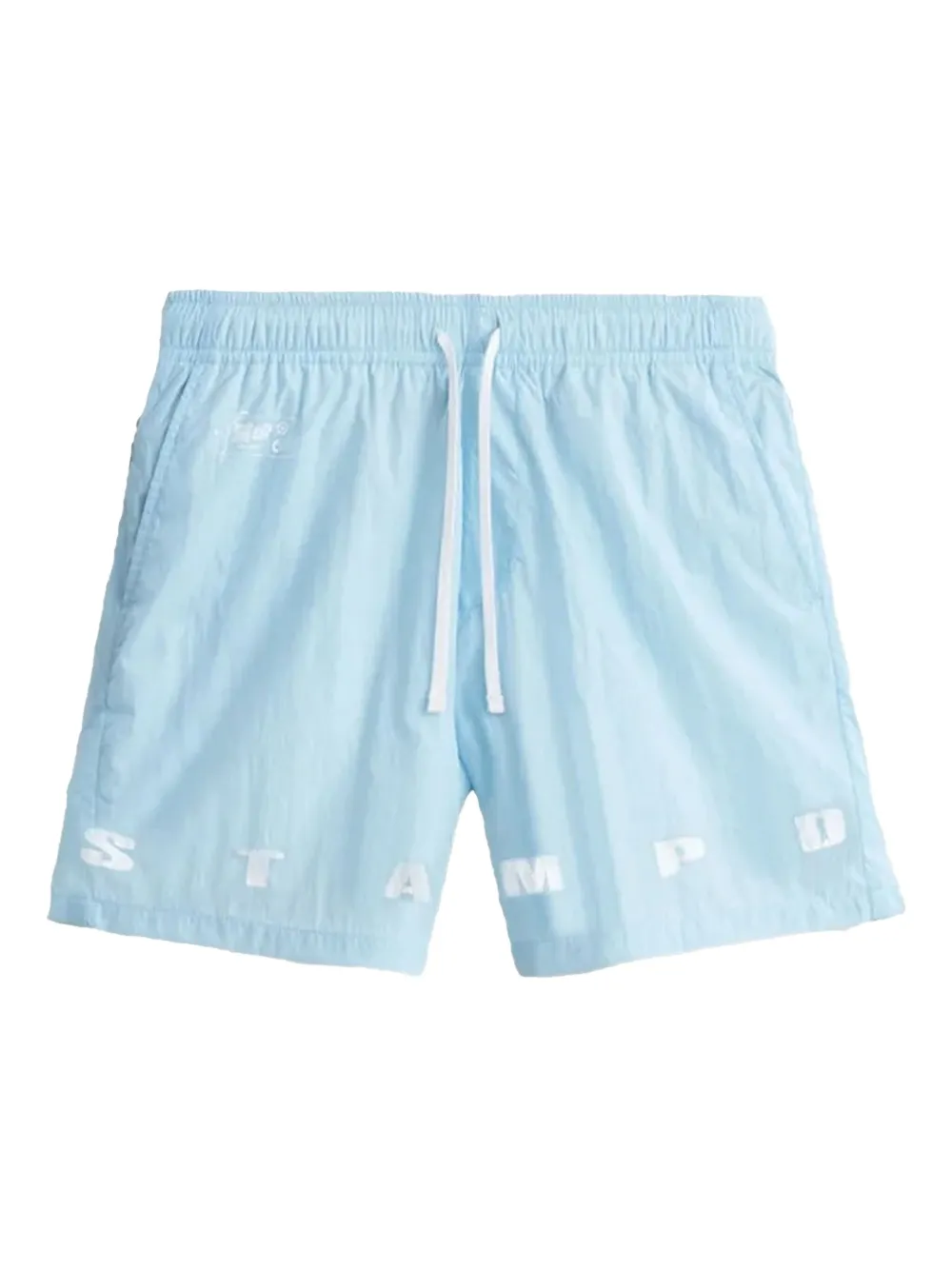 bleu clair taille élastique à lien de resserrage logo imprimé poches latérales fendues poche arrière à rabat