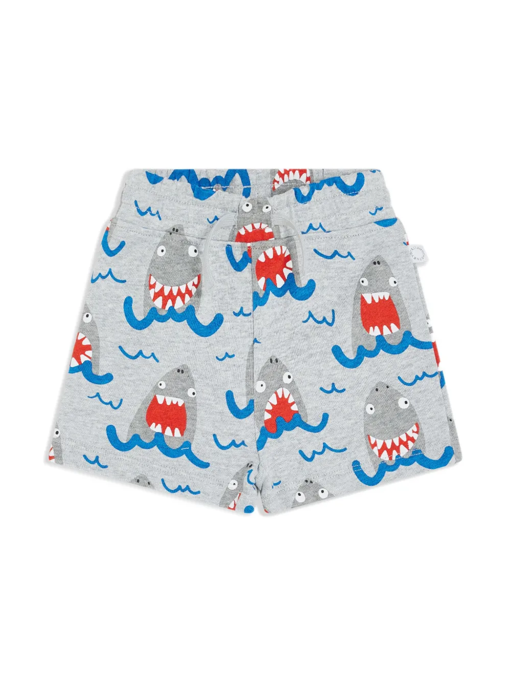 gris/multicolore polaire imprimé requin taille élastique à lien de resserrage poche arrière plaquée
