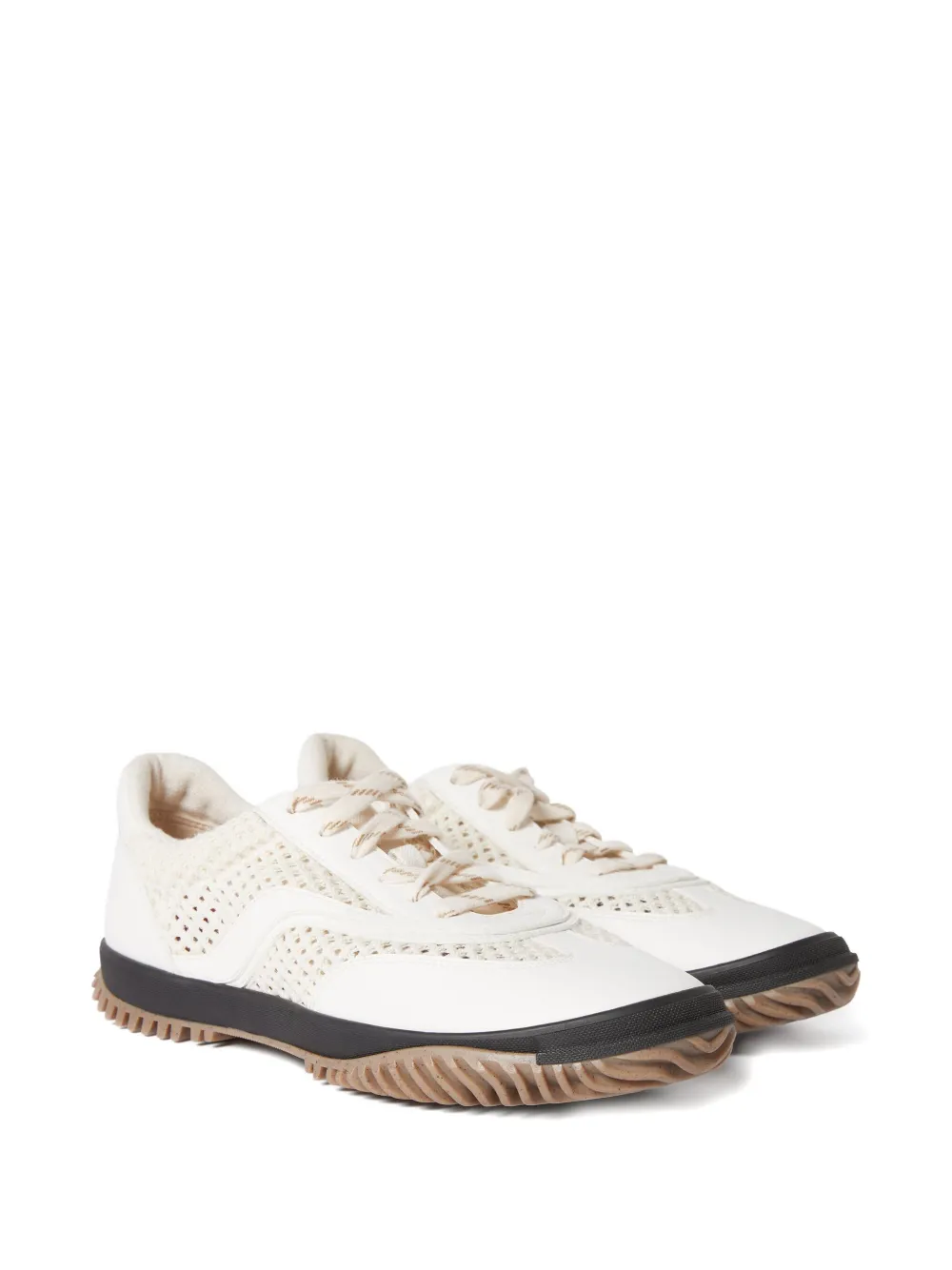 wit mesh vlakken vetersluiting rubberen zool zool met textuur low-top design