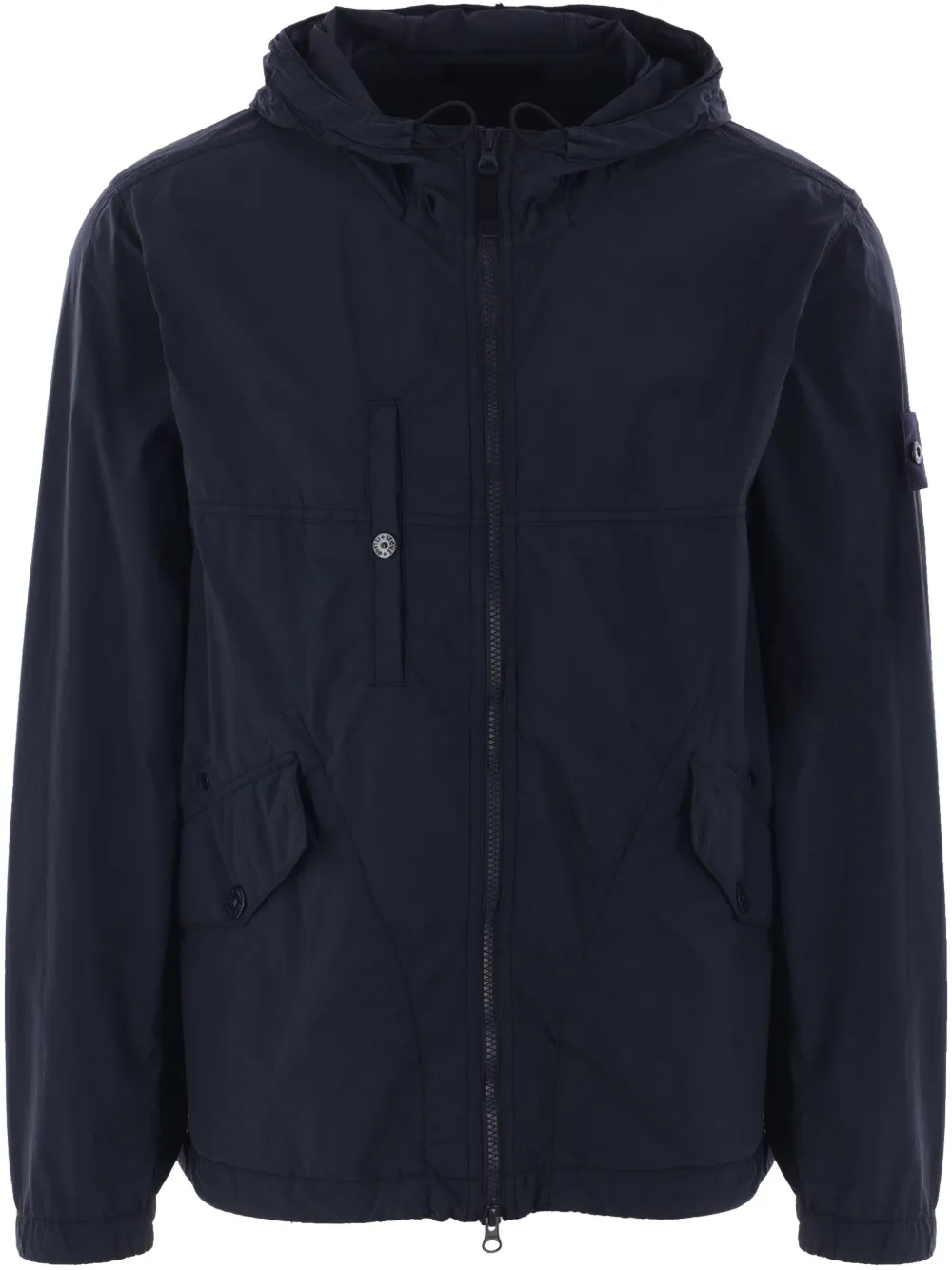 bleu marine fermeture zippée à double sens sur le devant capuche à lien de resserrage poches latérales à rabat poche passepoilée devant