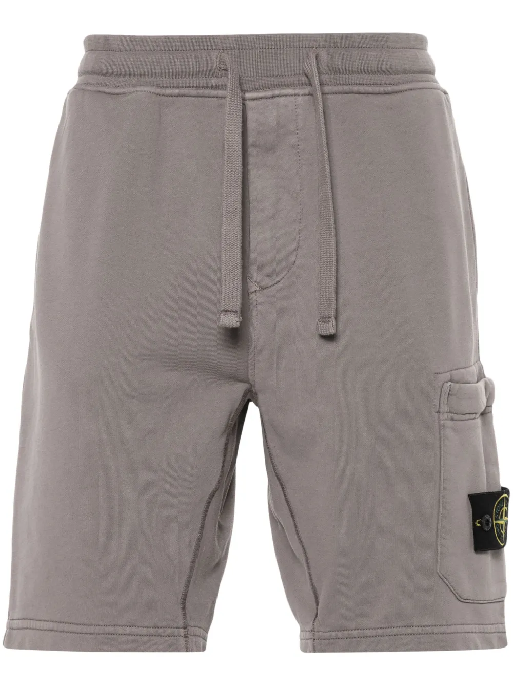 marron coton texture jersey badge Compass signature détachable boutons à logo gravé taille mi-haute coupe courte deux poches passepoilées avant poche arrière à rabat poches cargo latérales taille nervurée doublure French en éponge
