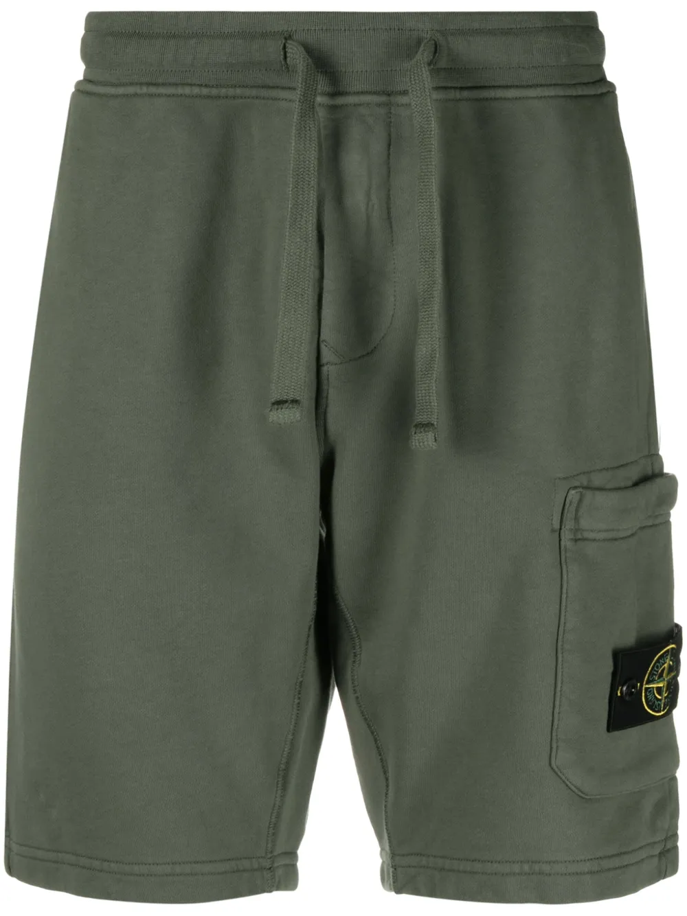 vert sapin coton texture jersey coutures ton sur ton taille élastique à lien de resserrage poches latérales fendues fermeture zippée poche passepoilée à l’arrière badge Compass signature détachable longueur genou doublure French en éponge QR code d’authenticité