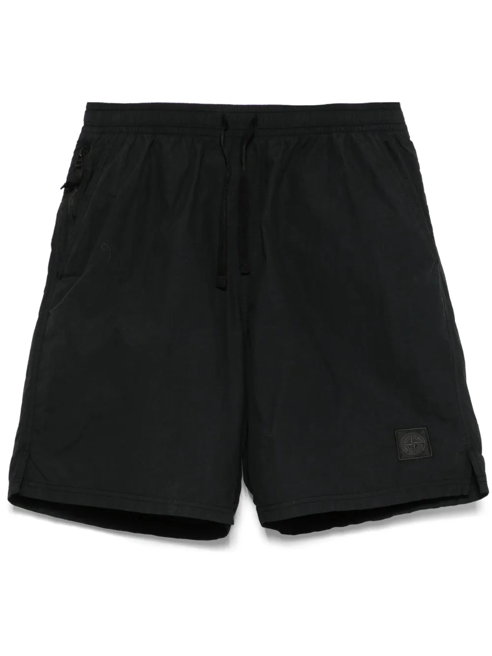 noir taille élastique à lien de resserrage deux poches latérales passepoilées poche latérale zippée deux poches arrière zippées