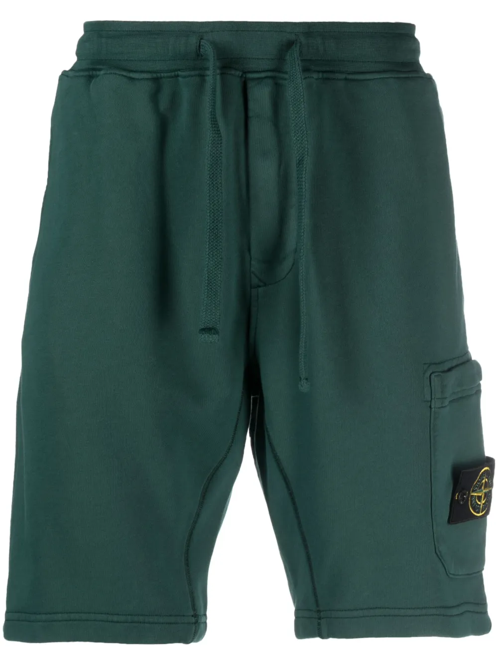 Vert forêt, coton, patch logo sur le côté, taille élastique à lien de resserrage, poches latérales fendues, poche arrière plaquée, poche arrière passepoilée.