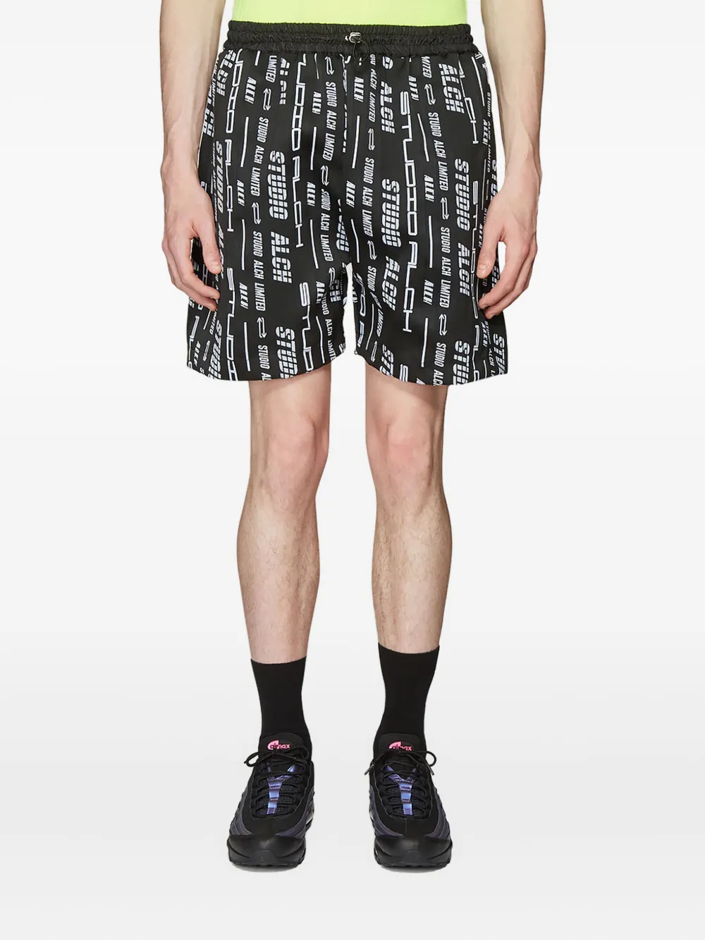 noir design à empiècements motif monogrammé poches latérales lien de resserrage ceinture élastique