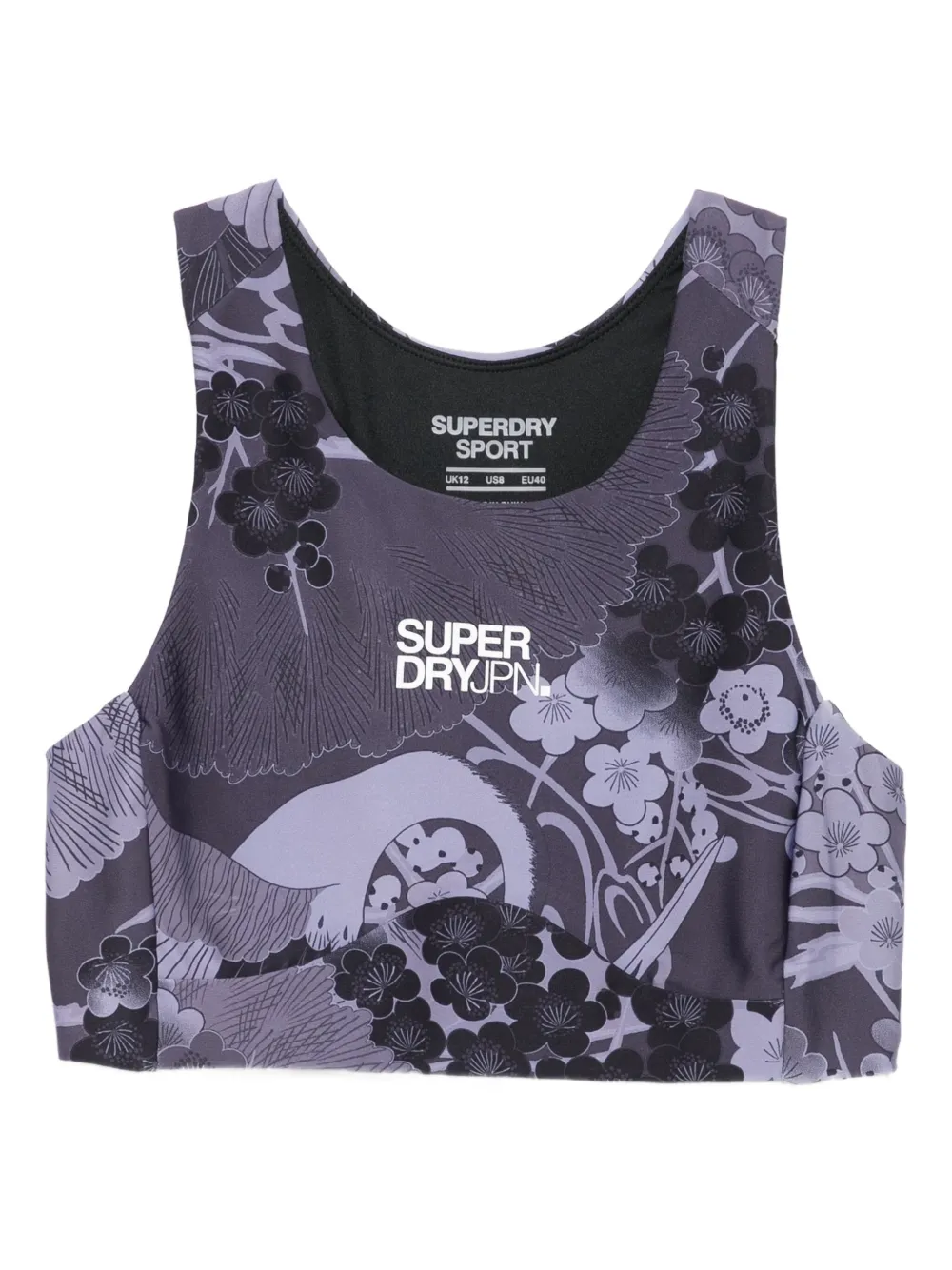 gris imprimé à fleurs encolure arrondie design sans manches détail de logo dos nageur