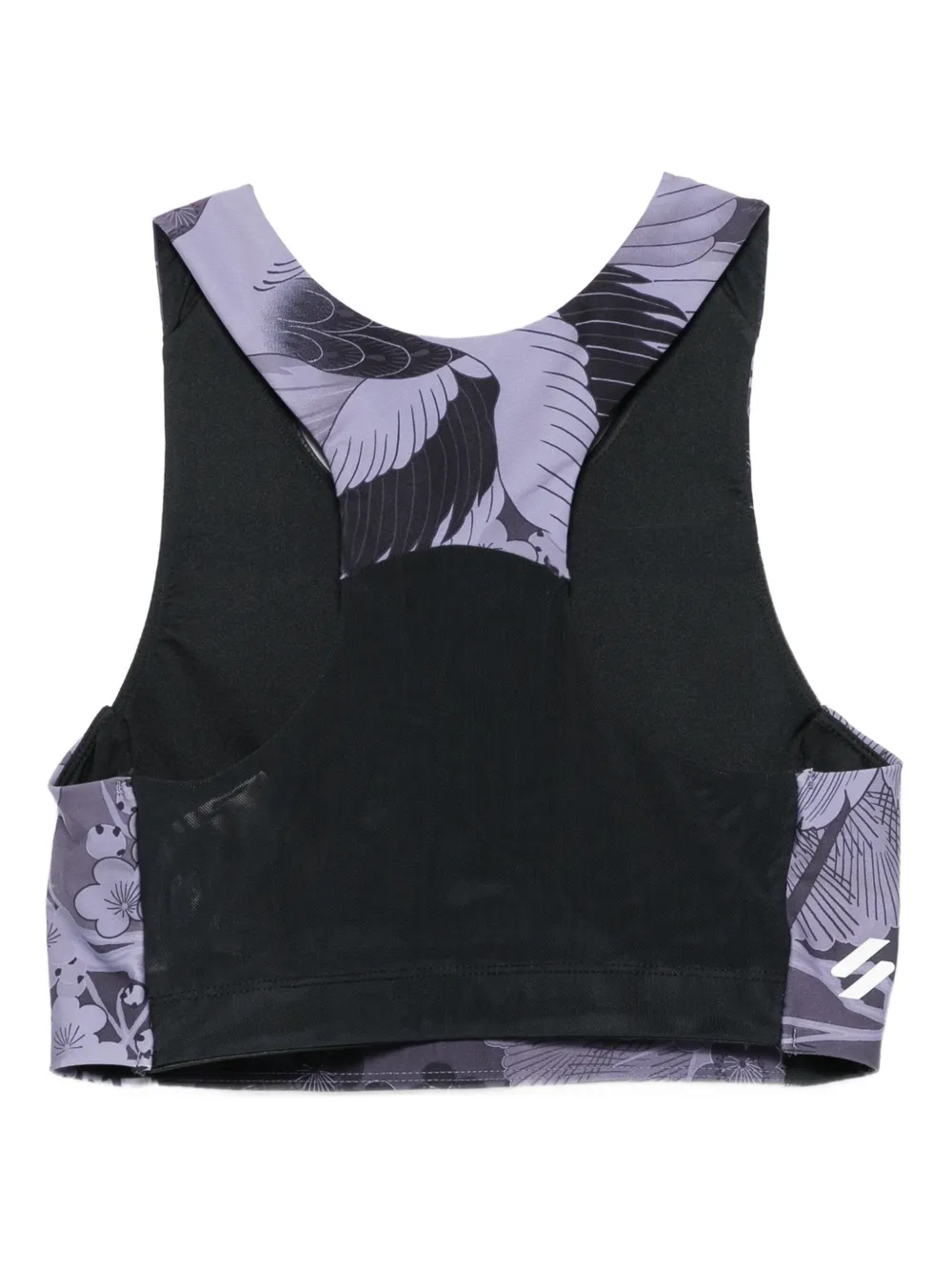 grijs bloemenprint ronde hals mouwloos logodetail racerback