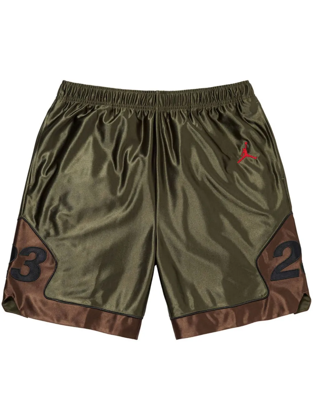 vert/marron motif Jumpman signature logo brodé à l’arrière motif brodé empiècements contrastants ceinture élastique poches latérales fendues poche arrière passepoilée ourlet droit