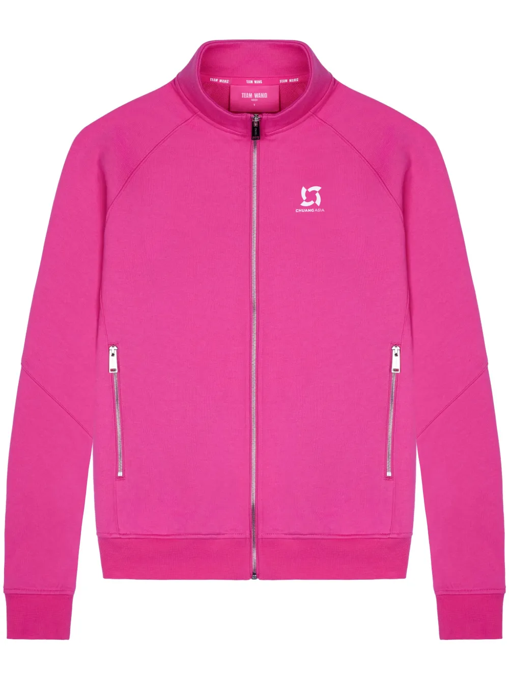 rose fuchsia coton logo imprimé à la poitrine col montant fermeture zippée devant poches à fermeture zippée devant manches longues ourlet droit