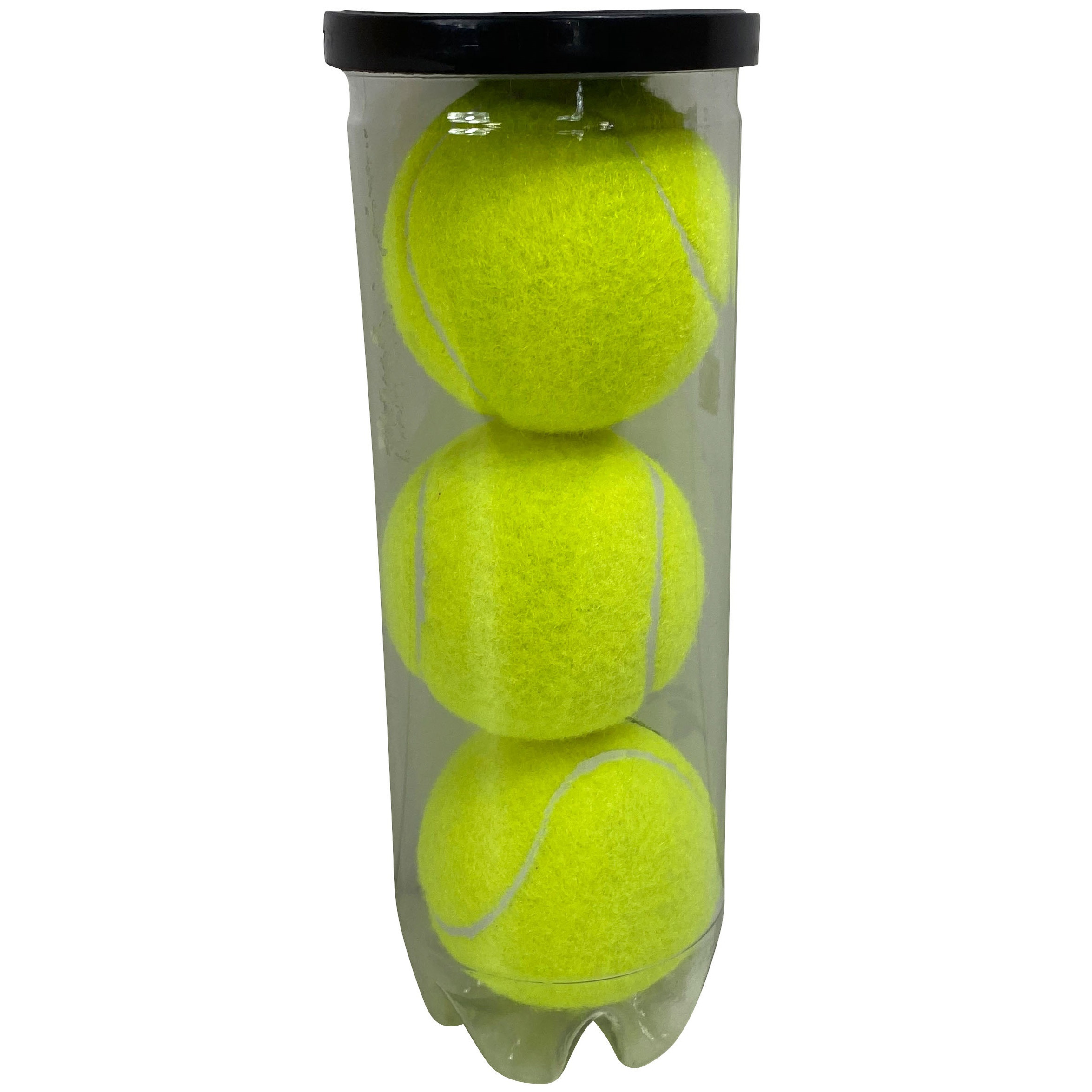 3x Tennisballen verpakt in handige bewaarkoker met deksel. Deze tennisballen zijn geschikt voor recreatief gebruik en zijn geschikt voor alle ondergronden. De ballen zijn gasgevuld. Inhoud: 3 ballen. Kleur: geel.